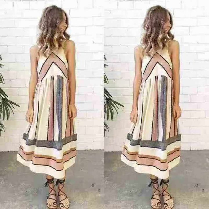 8.8元秒杀[發][發] 时尚印花沙滩休闲百搭中长裙无袖连衣裙,独立包装,码...