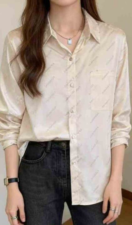春夏季新款复古港风抽象印花简约宽松长袖衬衫,独立包装,码数1-4码(相当...