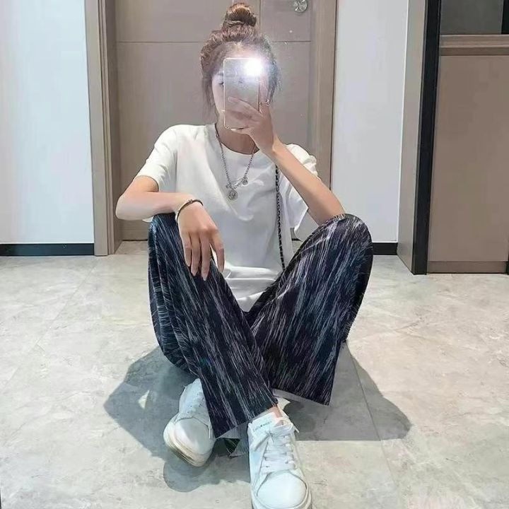 400条 夏季新款冰丝水墨画阔腿裤窄版 高弹力均码(80—135斤) 独立包装 ...