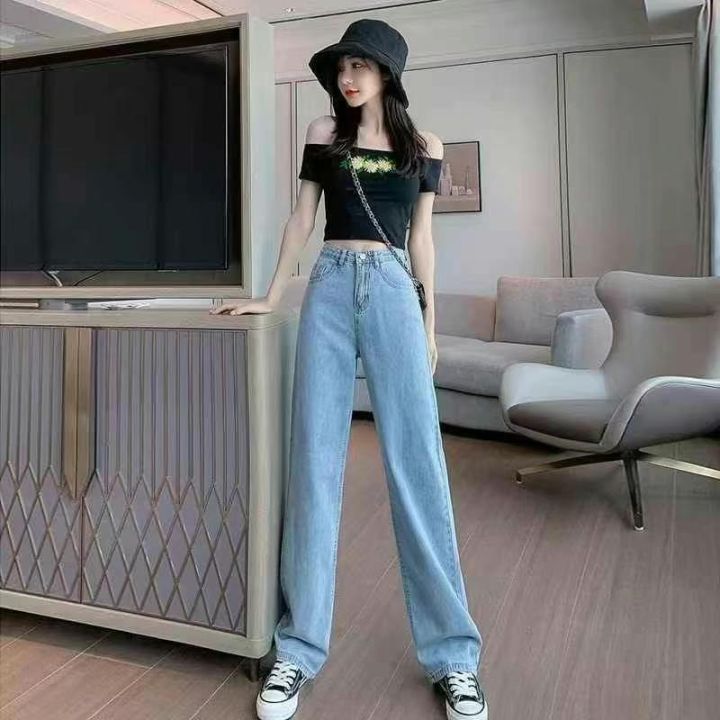 清货价12.8,数量120条左右。高腰阔腿女牛仔裤直筒宽松垂感泫雅拖地长裤尺...