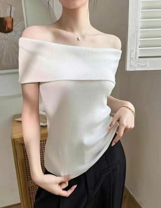 辣妹一字肩针织短袖276件7.9 面料柔软舒适,高弹力,露肩设计,手感好,品...
