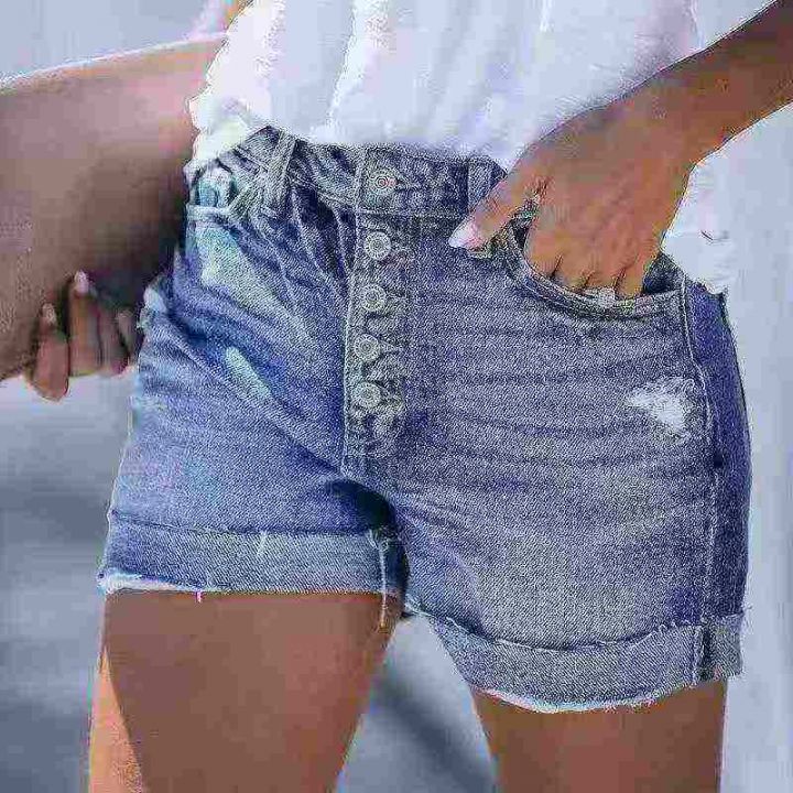 欧美牛仔短裤女夏季新款显瘦百搭宽松破洞韩版直筒翻边短裤子113条全清8.8元...