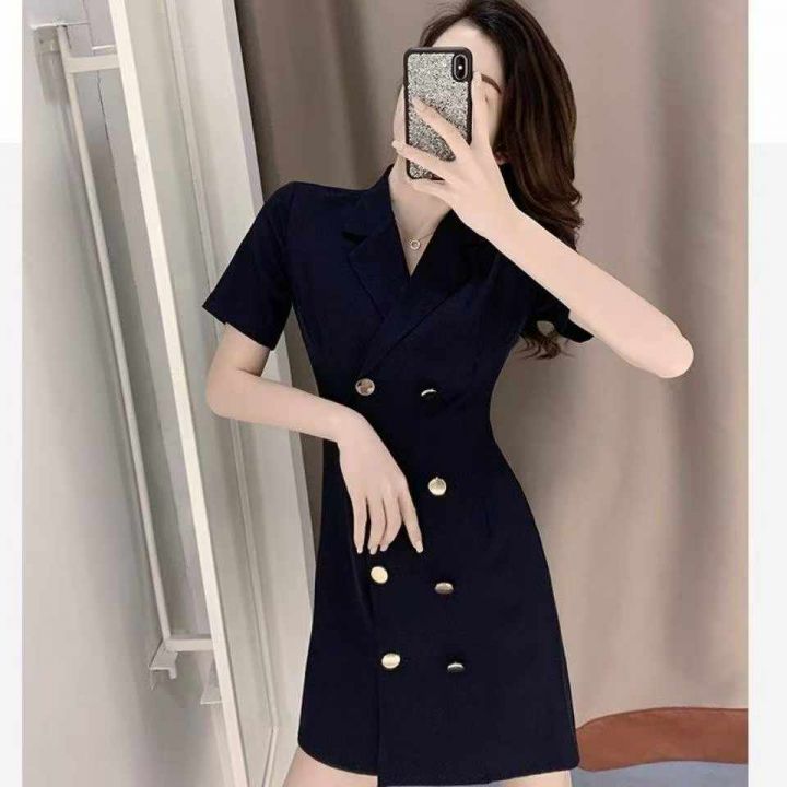 夏季新款赫本风收腰显瘦气质轻熟风西装连衣裙,独立包装,码数S-4XL码,宝...