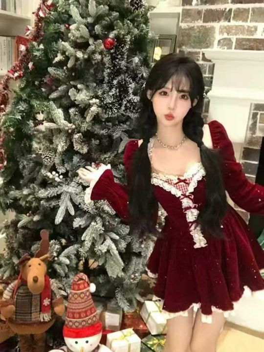节日氛围感小礼服连衣裙圣诞新年植绒连衣裙~冬季纯欲收腰公主礼服短裙!!...