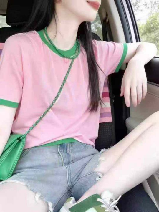 4.5清电商仓回收773件靓妹原宿风ins韩系撞色纯棉短袖T恤,码数M-3XL。后领...