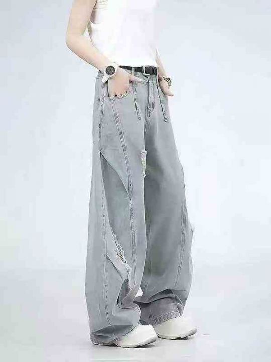 男女同款破洞弯刀阔腿牛仔裤 107件,全清14.8元,码数:S/M/L,正品独立包...