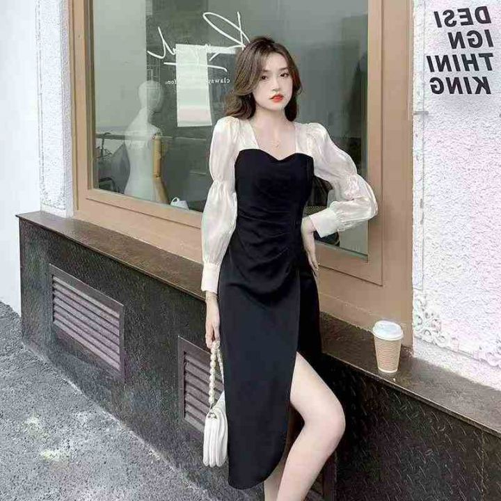 ① 法式设计感泡泡袖轻奢御姐风连衣长裙!独立包装,整款两色,码数S-2XL,...