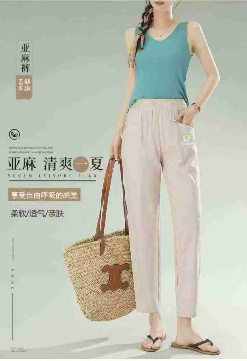 全清价7.5元捡漏309条刺绣菊花麻棉休闲修身女裤冰丝直筒裤,独立包装,码数...