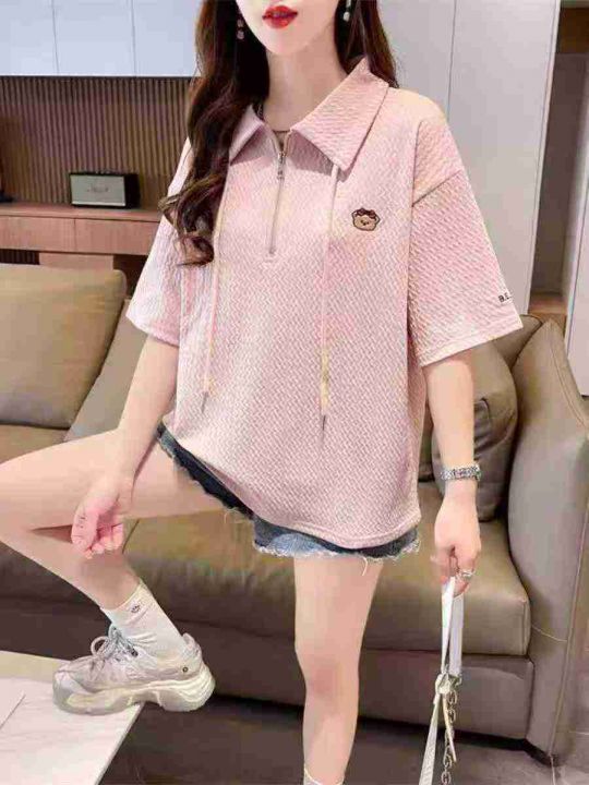 ☕️polo领短袖t恤女新款夏季韩版宽松大码设计感小众短袖上衣301件全清11.8...