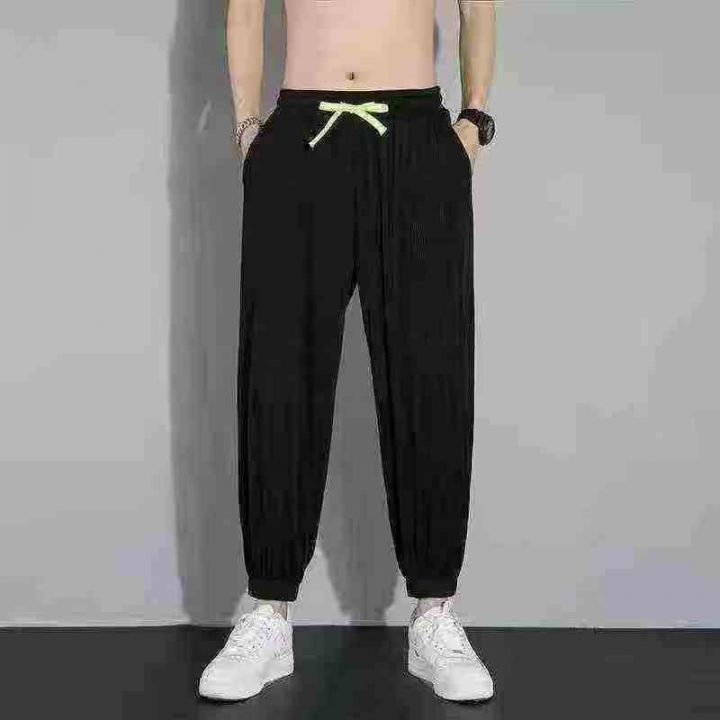 全清6.5元,6538条\'裤子夏季男休闲薄款韩版ins潮牌冰丝条纹运动大码弹力宽...
