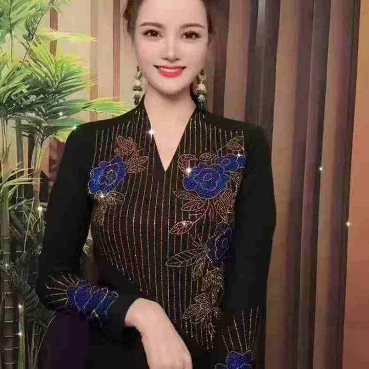 110件高端爆闪贵妇V领烫钻潮流新款时尚修身显瘦洋气加绒打底衫上衣,内里加...