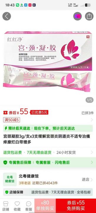 宫颈凝胶3g/支x3支缓解宫颈炎阴道炎不适专治瘙痒糜烂白带增多...