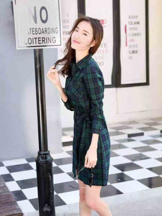 ① 秋冬装新款长袖翻领格子衬衫连衣裙!独立包装,码数S-xl,数量50件左右...