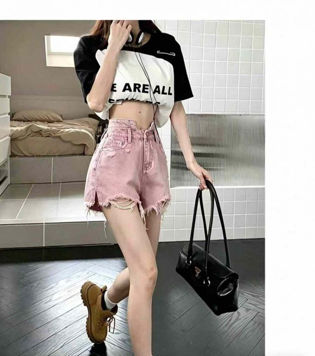 夏日热销粉紫色牛仔短裤女阔腿热裤夏季高腰设计感牛仔短裤930条全清7.8元,...