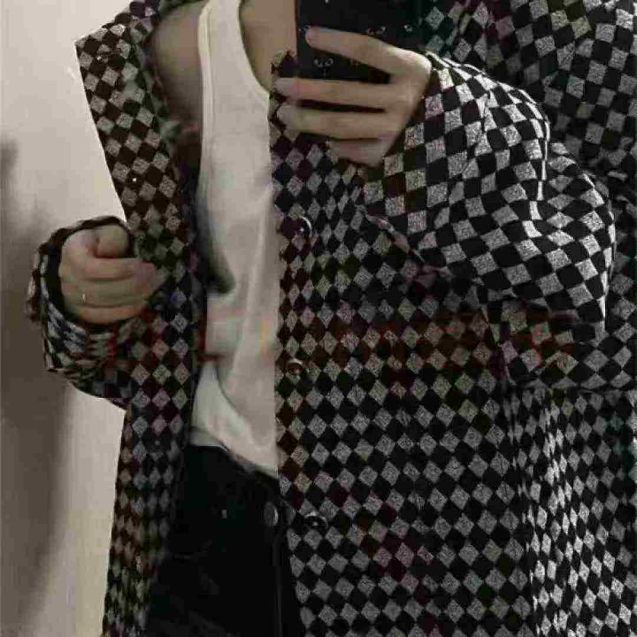 贝吉棋春秋款外套女ins美式复古棋盘格子polo领外套,数量1445件,码数m-2xl...