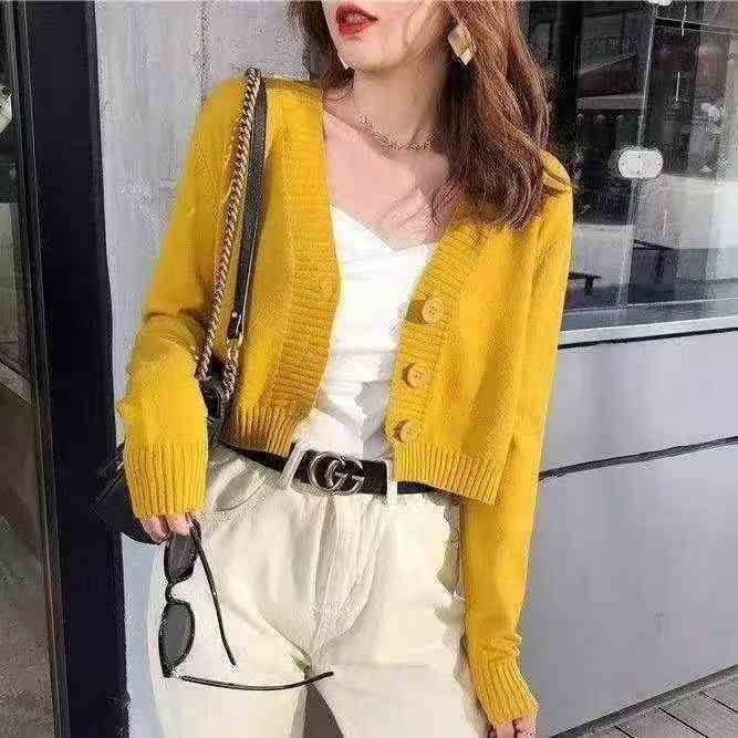 秋季新品小清新设计款短款针织毛衣开衫,独立包装,均码面料软糯舒适弹力大...