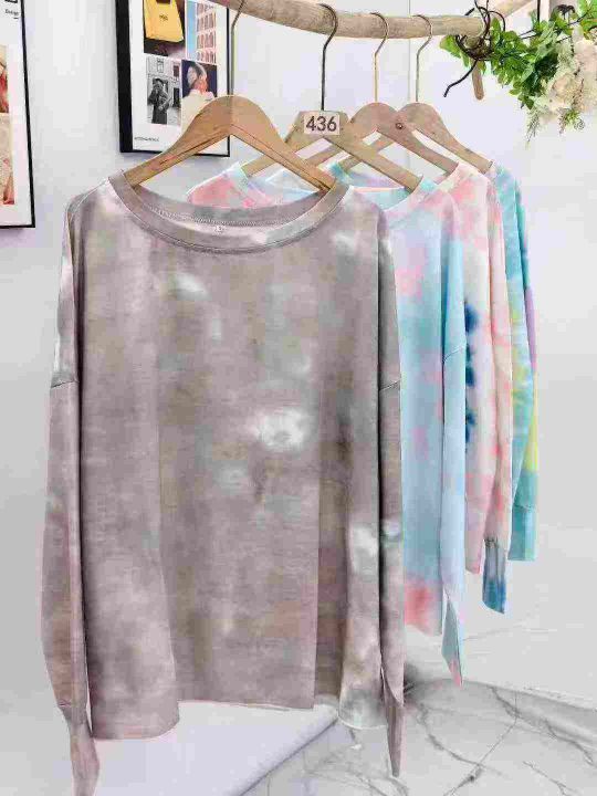 外贸扎染薄款女装卫衣,清3.99单款多色,纯棉面料(65棉),数量1200件左...