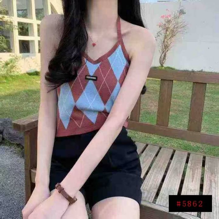 春夏新款复古菱格辣妹小标挂脖针织吊带背心独立包装,均码面料柔软舒适,64...