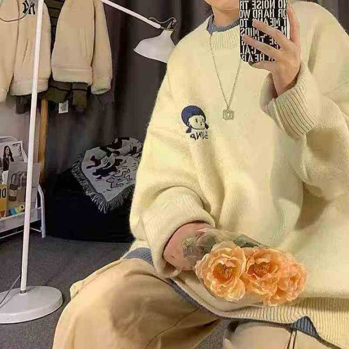 日系复古毛衣男款秋冬撞色打底衫线衣加厚潮牌宽松针织衫,独立包装,货品干...