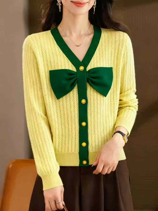 秋季新品优雅气质港风复古chic洋气蝴蝶结名媛小香风长袖针织毛衣,独立包装...