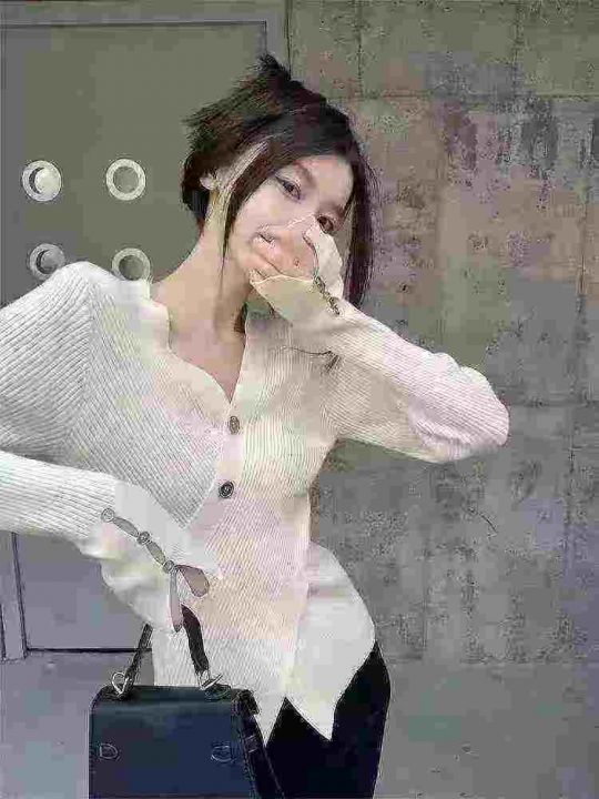 不规则v领针织衫女秋冬设计感小众毛衣开叉修身上衣潮,独立包装,550件,清...