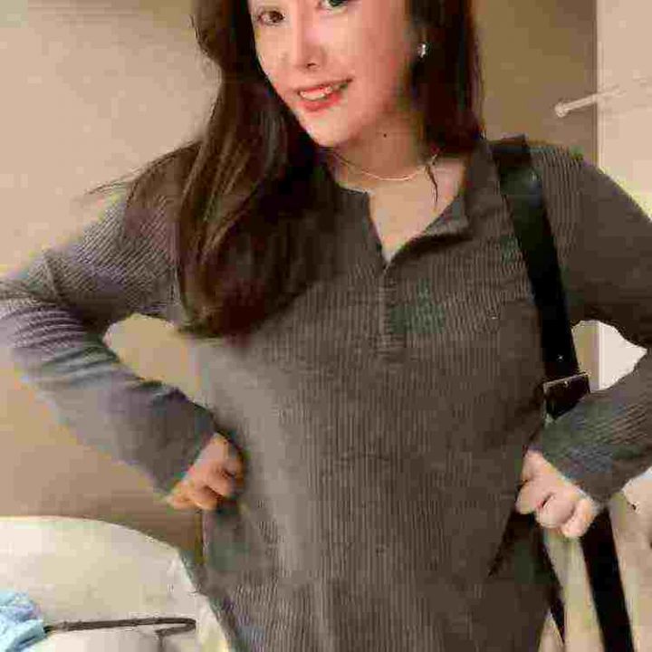 2230件韩系早秋新款宽松V领显瘦内搭打底衫上衣,含棉单款多色高弹力,尺码S...