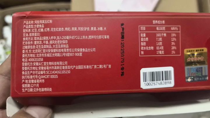 阿胶燕窝五红粉40克,10000盒左右25年7月日期,保一年