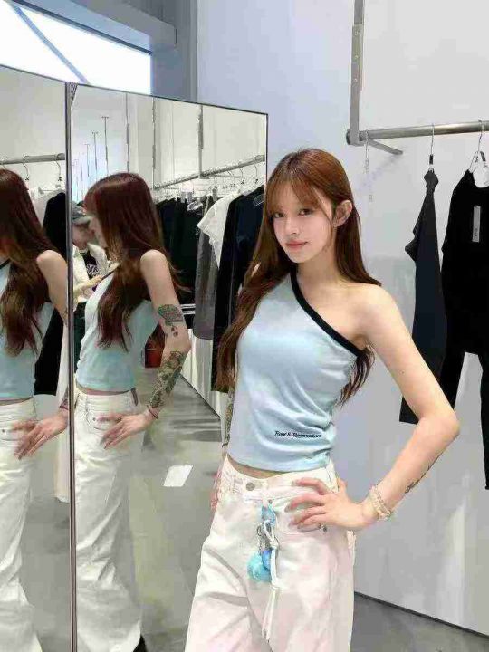 全清6.8元/清230件品牌甜辣风斜肩背心,小整款,多款多色图案多,均码,面...