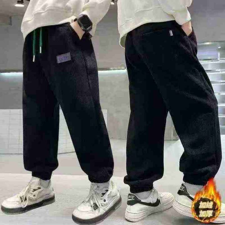 清7.8分货➕12025男童裤子秋冬款灯芯绒新款卫裤加绒加厚男孩中大童长裤潮,...