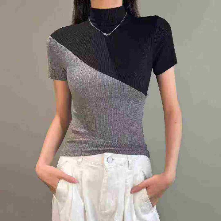 全清5.8元天猫在售款350件左右高品质夏季半高领拼色螺纹短袖T恤,单款单色...