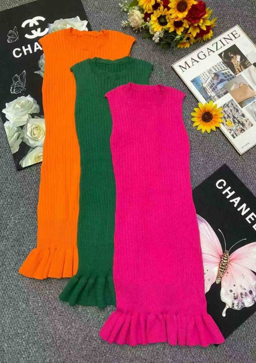 春夏季新款外贸原单美式复古坑条包芯纱荷叶边针织背心连衣裙,独立包装,码...