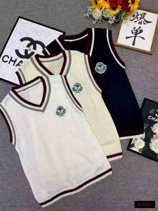 春秋新款韩系宽松百搭学院风刺绣小标针织毛衣马甲,独立包装,均码面料柔软...