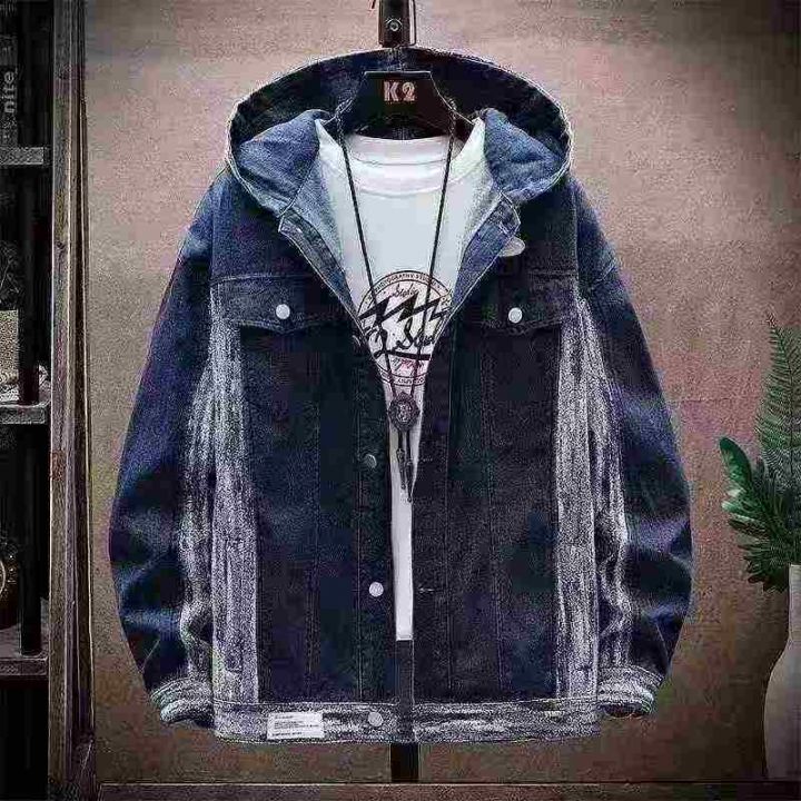 美式复古连帽牛仔外套男潮牌ins宽松百搭夹克韩版潮流假两件外套200件,独立...