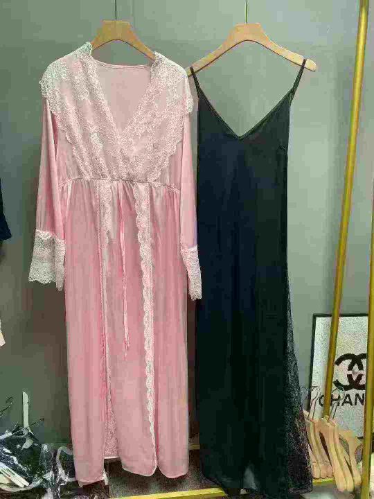 外贸长款仿真丝睡袍100件左右,粉色就几件,黑色为主,两捆有包装,大货水...