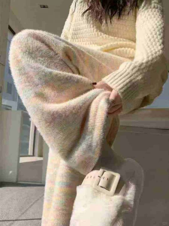 秋冬新款网红爆款韩系彩虹泡泡直筒阔腿糯米毛线裤,独立包装,面料软糯厚实...