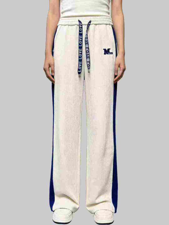天猫精选230条,新款杏色拼蓝色条纹雪尼尔阔腿裤 吊牌价:599元,裤头内里...