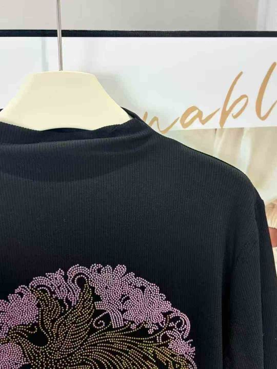 1300件左右金枝玉叶镶钻长袖女装修身打底衫长袖内搭亮钻黑色t恤百搭潮,面...