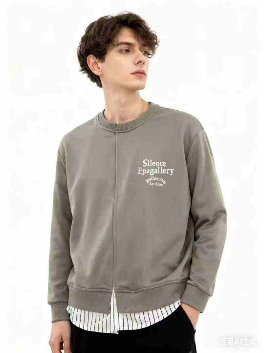 全清6.8元/件500件左右情侣款假两件套拼接刺绣圆领卫衣,单款单色,码数1-4...