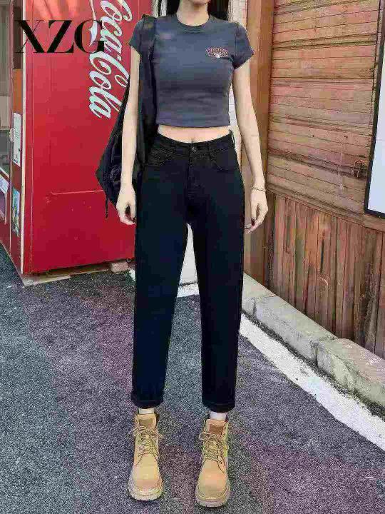 黑色哈伦高腰显瘦小脚抓绒老爹弹力牛仔裤,单款单色,数量300条,S-4XL码,...