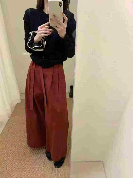 上新全清:10.8一件复古高腰系带独特设计宽松百搭休闲长裤,[爱心]40件左右...
