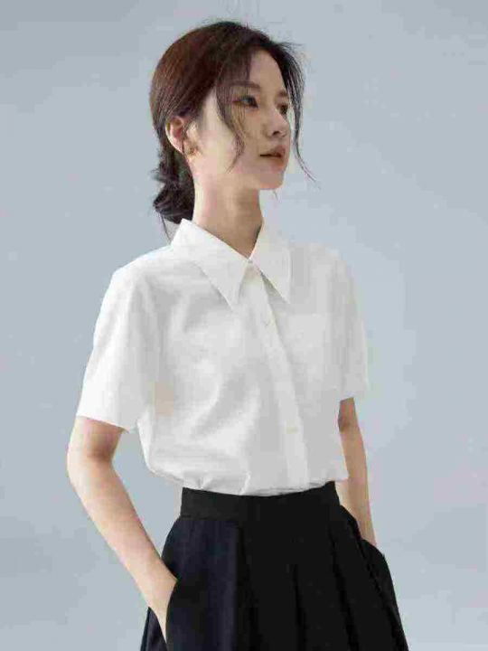 清仓4.978件气质简约纯色短袖衬衫宽松百搭装翻领开衫 衬衫上衣 S-XL码,独...