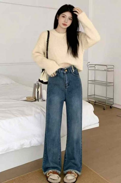 春秋新款宽松百搭网红毛边大阔腿牛仔裤,独立包装带吊牌,码数S--5XL码,20...