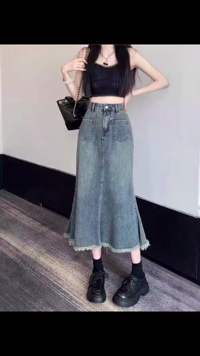 天猫下架一批视频系列款洗水棉网红牛仔半身长裙,独立包装带吊牌或是腰卡,...