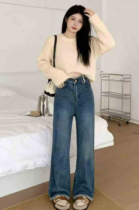 春秋新款宽松百搭网红毛边大阔腿牛仔裤,独立包装带吊牌,码数S--5XL码,20...