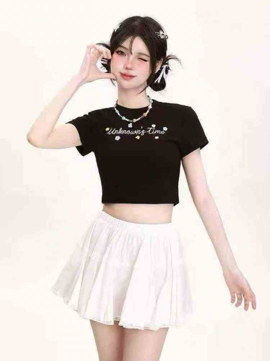 全清5.9甜辣妹假两件温柔碎花短袖T恤女春夏内搭打底衫 ,独立包装,数量171...
