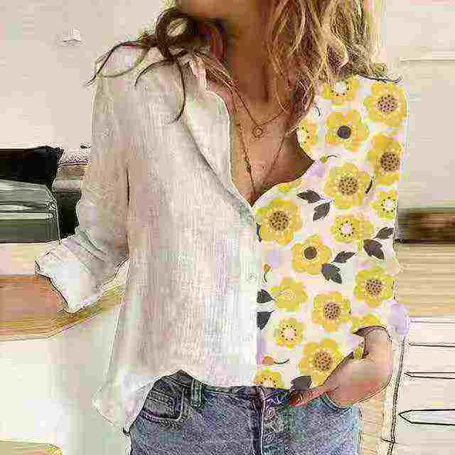 5.9清工厂回收357件外贸女士宽松大版印花长袖衬衫,码数S-2XL。版型质量好...