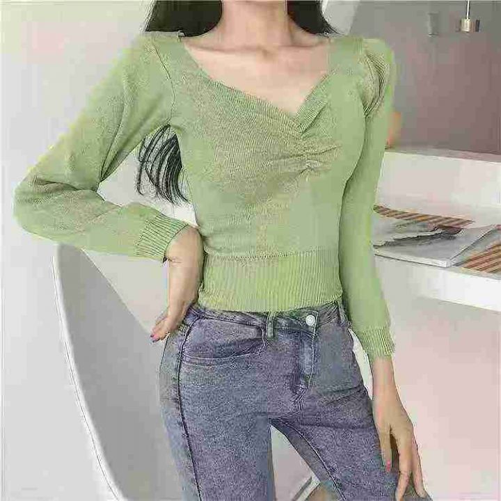 v领针织外穿内搭设计感小众长袖针织毛衣打底衫,独立包装,六个颜色,均码...