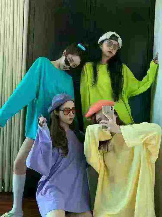 秋季新款韩版百搭姐妹装闺蜜套装宽松彩色纯棉长袖t恤500件,尺码S~XL独立包...