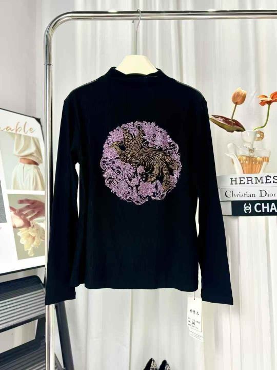 200件左右烫钻打底衫春秋新款国风亮钻洋气内搭亮闪闪长袖T恤上衣,面料柔软...