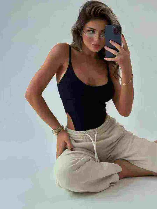 5.9清1050件亚马逊辣妹连体衣 辣妹螺纹纯色涤纶吊带背心 码数S-3XL。面料...